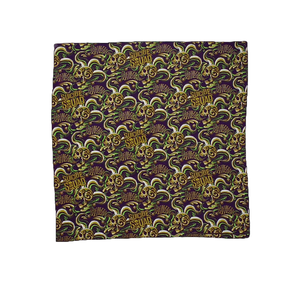 The Joker's skull laughs uncontrollably in this brilliantly coloured design from the movie Suicide Squad. Our 100% cotton bandana is perfect as a head wrap or around the neck.