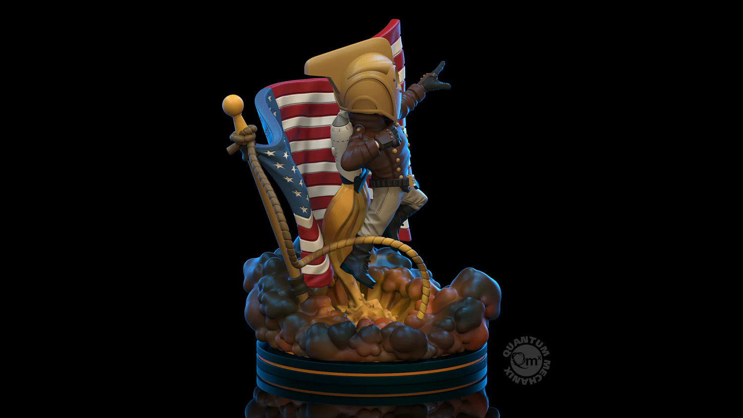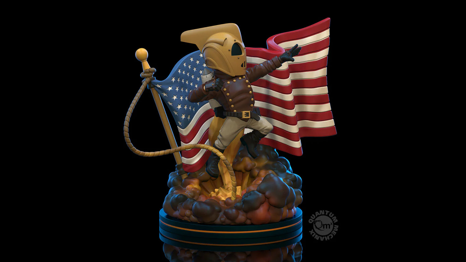 The Rocketeer Q-Fig Elite stands approximately 5 inches tall from the fiery diorama display base to the top of the American flag billowing behind our hero. Your memories of Disney’s The Rocketeer will come rushing back as Cliff Secord barnstorms across the sky and into your collection. Collect The Rocketeer Q-Fig Elite from QMx today and join the fight for freedom!