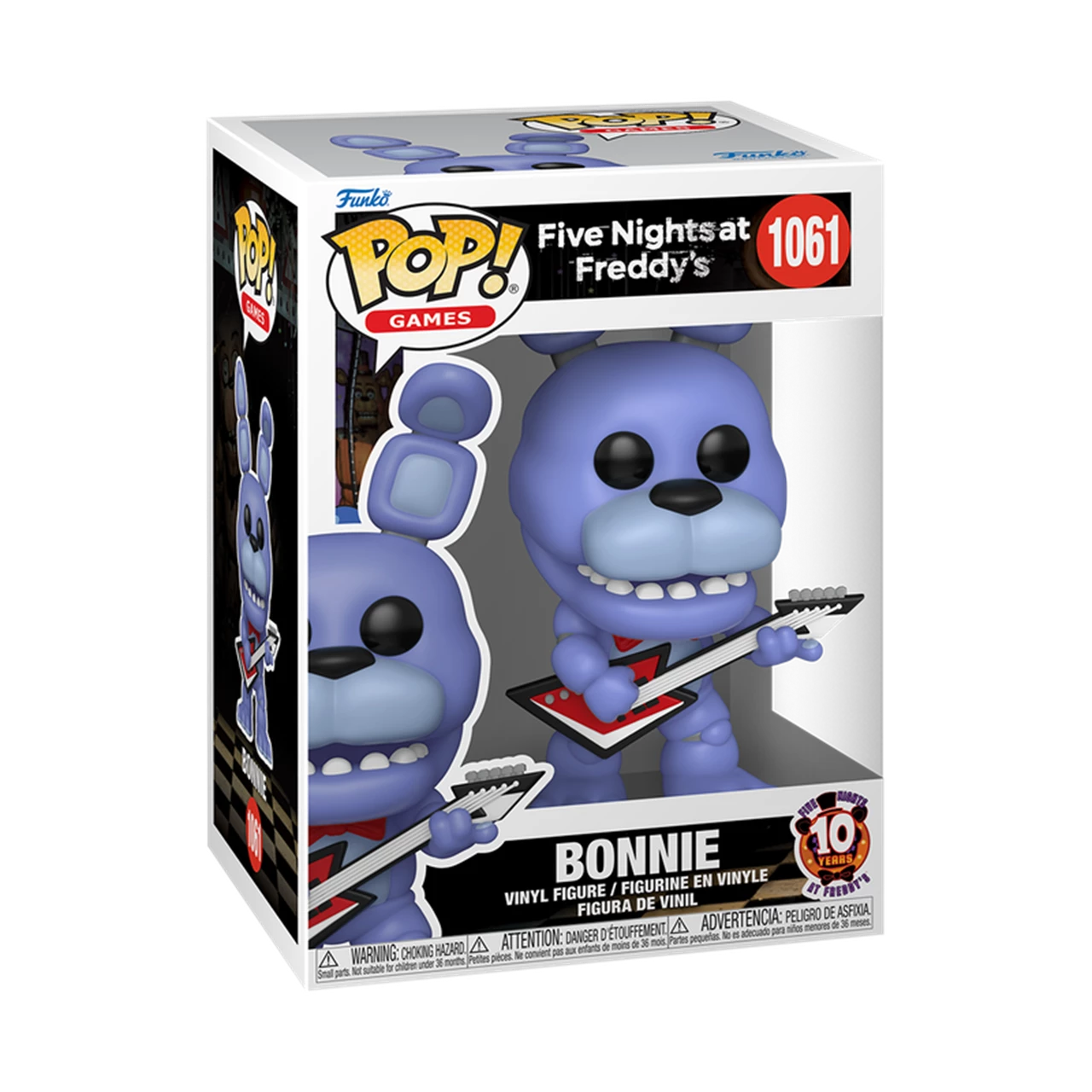 Give your collection a jumpscare with POP! Bonnie! Celebrate 10 Years of Five Nights at Freddy's and complete your collection by closing in on POP! Bonnie before this animatronic moves! Vinyl figure is approximately 5.35-inches tall.
