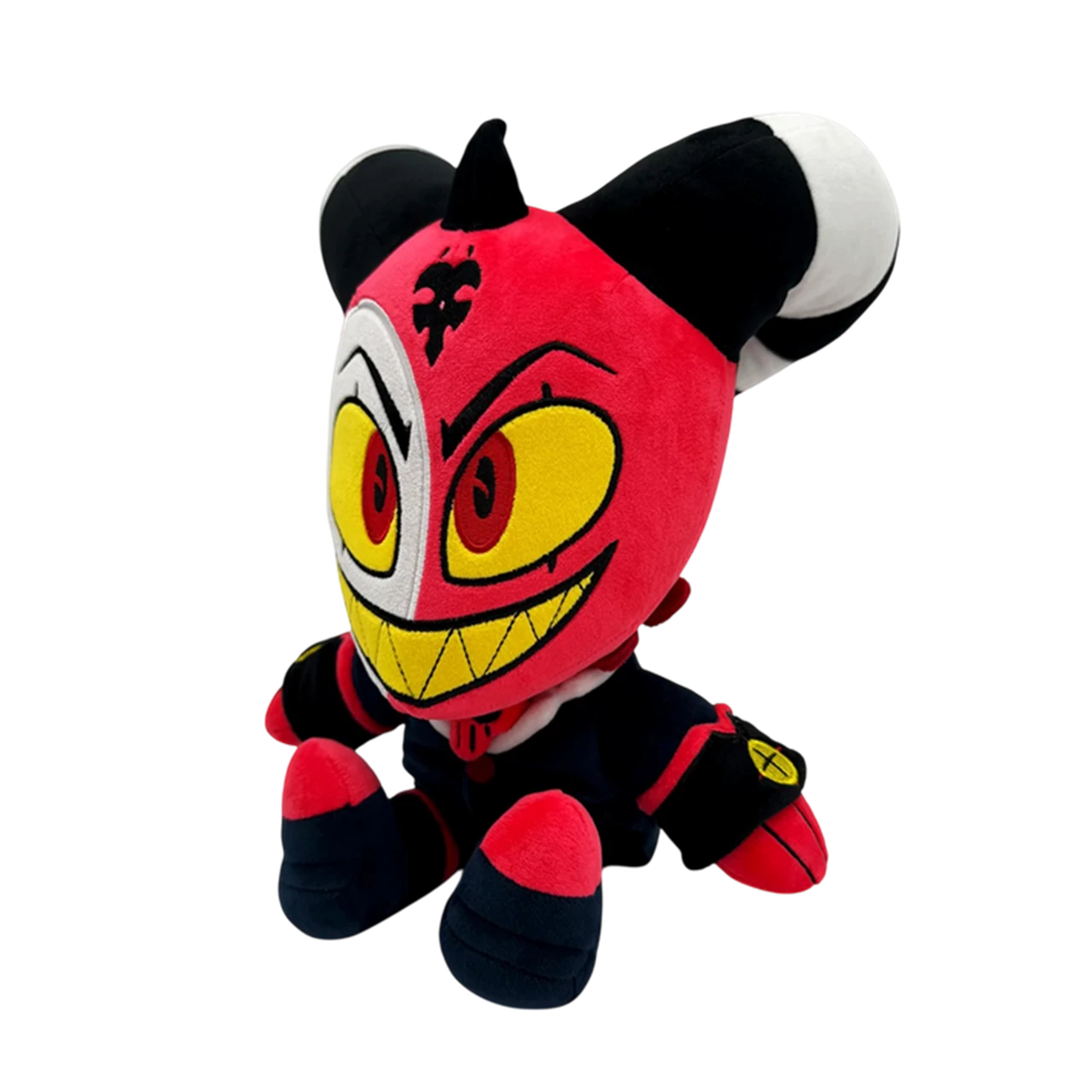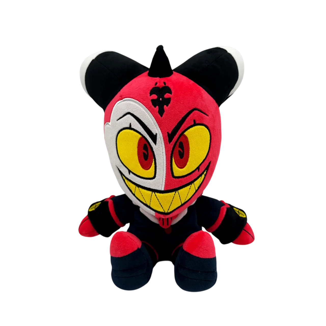 Blitzo's back to finish the job! What job's that you may ask? His brand new Youtooz plush of course! Sitting at 9 inches tall with a sharp evil smile stretching across his red and white face to sit underneath huge menacing eyes and angled brows, the black heart skull mark on his forehead rests between two long black and white striped horns that curve backwards. Always dressed for business, whatever business that may be, he wears a long tattered grey coat with a white collar, dark pants and red-tipped shoes as his spined tail whips around from the back. This plush is packed to the seams with 100% PP cotton and is made of a mixture of soft minky and felt materials, absolutely perfect for cuddling or taking on some contracts with!