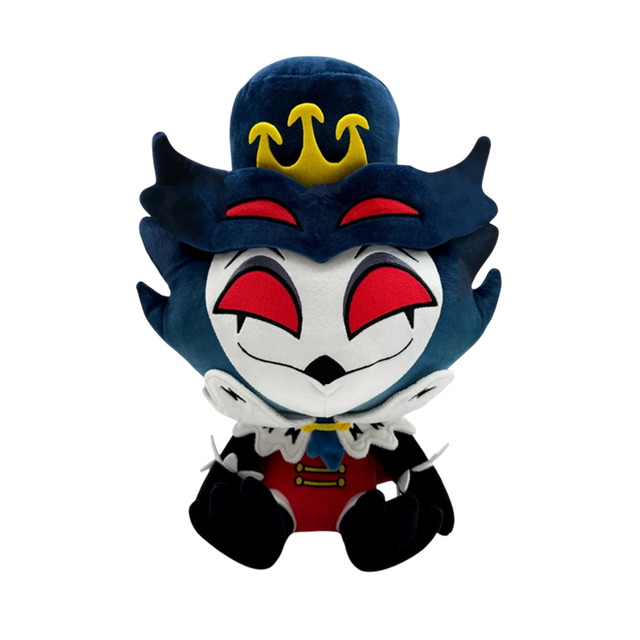 Now I wonder what royal decree has brought Stolas back to Youtooz? It's got to be his plush debut right?! Sitting at 9 inches tall with a thin smile curling up over his white avian face to sit under two pairs of bright red eyes, the dark plumage of his head parts in the middle to frame his golden crown with the hair sweeping to either side of his top hat. Dressed elegantly as a true prince always should, the white and black collar of his long coat fans out around his neck and drapes down his back over a red tunic that's adorned with golden buttons on its front as his clawed feet are kicked forward. This plush is packed to the seams with 100% PP cotton and is made of soft minky and felt materials, absolutely perfect for cuddling or ruling with!