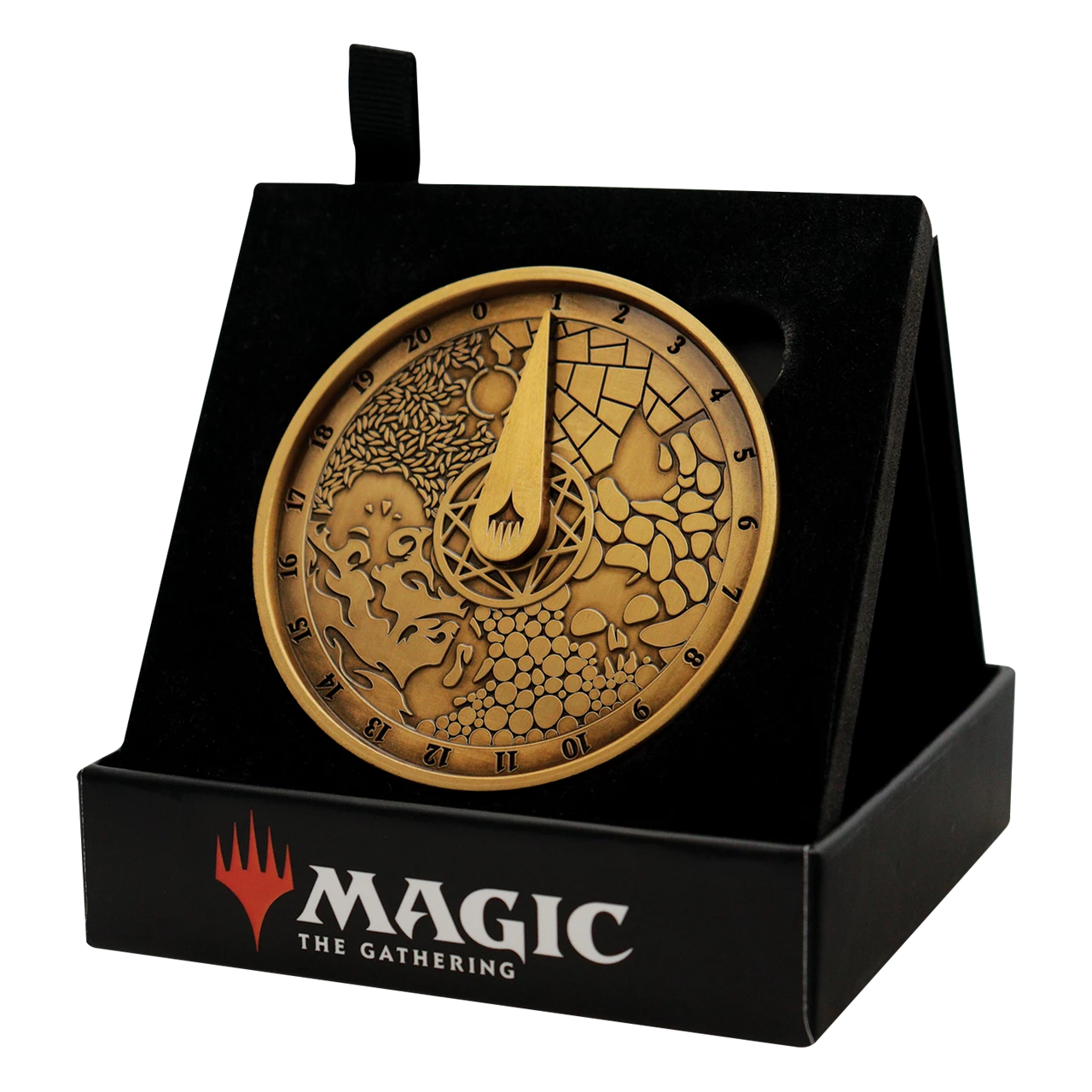 20 lives and counting! Track life loss and gain with ease, precision, and style with your very own life counter made from heavily embossed metal. Measuring 7cm in diameter, this life counter is complete with a spinning dial allowing for great functionality in tracking up to 40 life points. Finished with an antique gold design, this life counter also includes intricate Planeswalker Mana symbols.