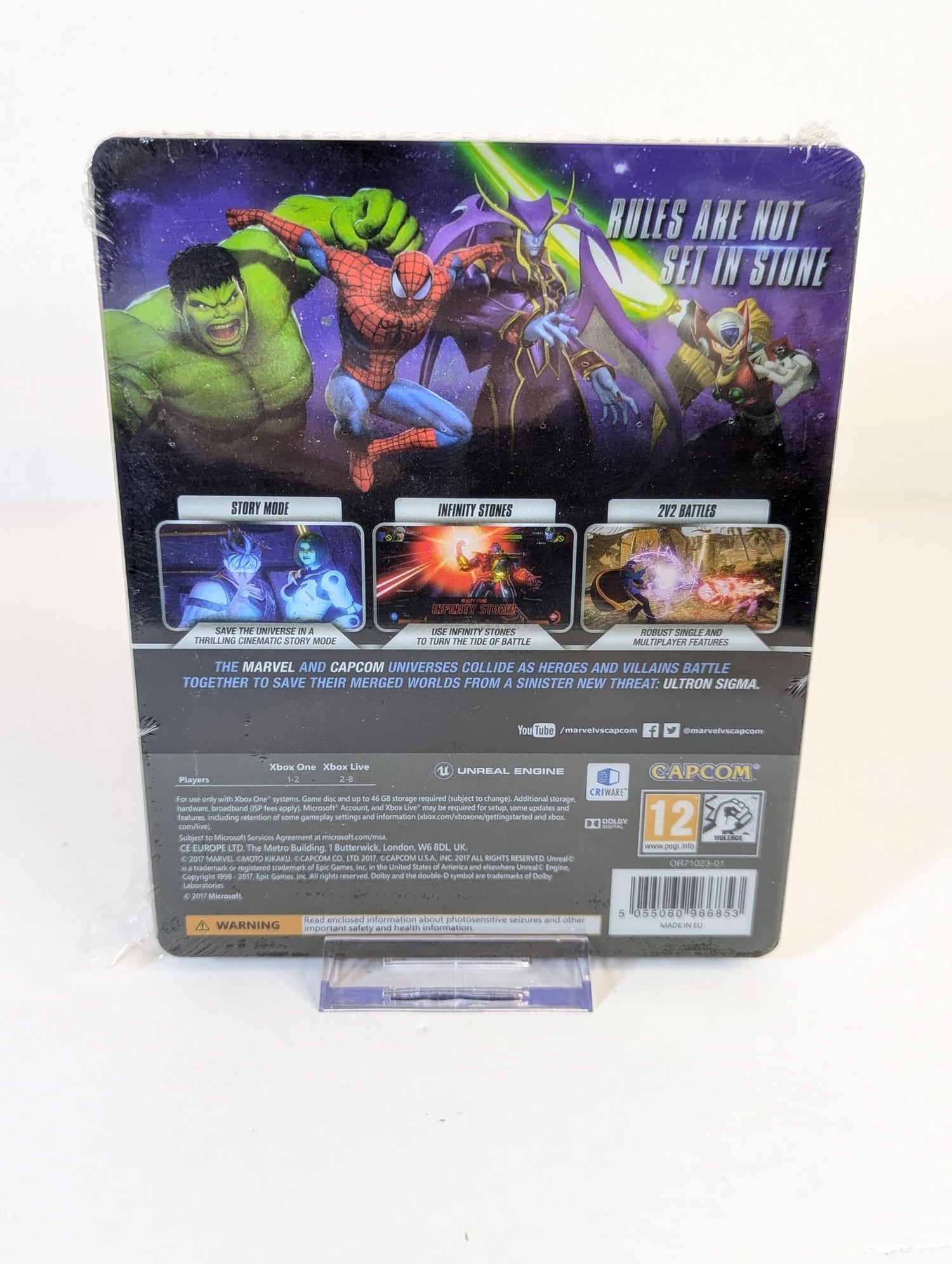The epic clash between two storied universes returns with Marvel vs. Capcom: Infinite, the next era of the highly revered action-fighting game series. Marvel and Capcom universes collide like never before as iconic characters team up for action-packed player-versus-player combat. Ultron Sigma has begun the systematic eradication of all biological life. Against all odds, heroes arise from the rubble, form new alliances and stand together against the ultimate threat, their only hope laying with the all-powerful Infinity Stones.