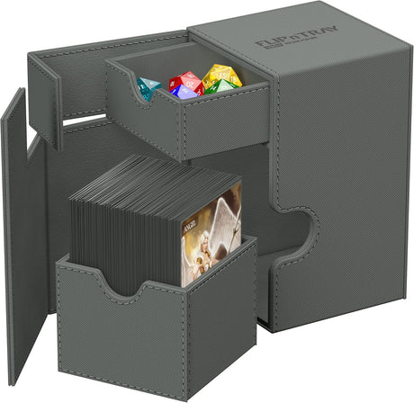 Ultimate Guard Flip 'n' Tray Xenoskin Trading Card Deck Box & Dice Tray (Grey) (100+ Capacity)