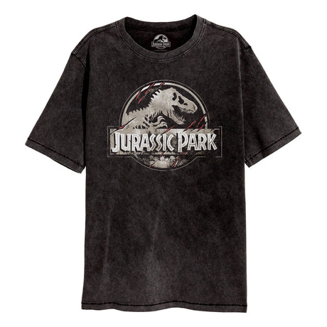 Jurassic Park Scratched Logo SuperHeroes Inc. Acid Wash T-Shirt