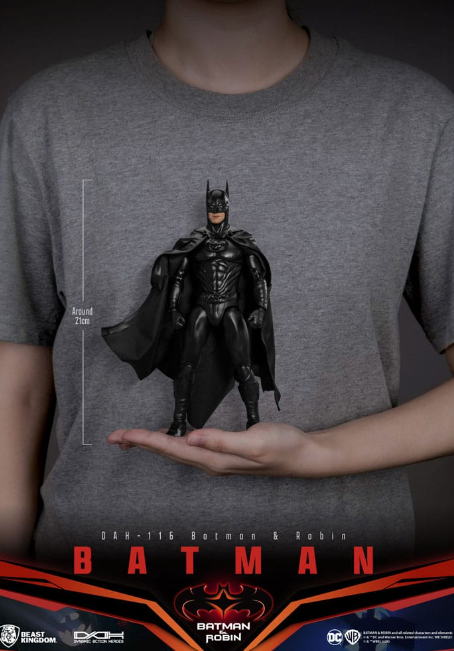 Entertainment brand Beast Kingdom introduces the latest addition to its highly detailed and articulated DAH (Dynamic 8ction Heroes) series: the DAH-116 Batman 1997. This figure is inspired by George Clooney's portrayal of Batman, with a head sculpt meticulously crafted to capture his facial features and expressions from the film. The figure emphasizes the unique design of Batman's suit, inspired by the armor of ancient Greek warriors, showcasing detailed muscle contours and a matte finish. The high-quality fabric cape and over 22 points of articulation allow fans to pose Batman in dynamic, heroic stances. Additionally, the set includes interchangeable accessories such as a lightweight grappling gun and an ice-breaking grappling gun, enabling fans to recreate Batman's iconic appearance from Batman & Robin.