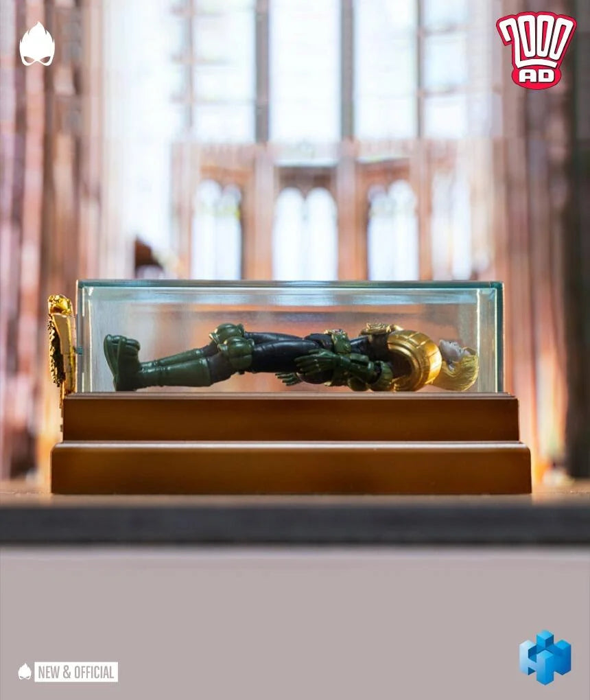 With 15 points of articulation and a range of accessories including a replacement hand, soul chip, Boing spray, special effects accessory, and a transparent coffin adorned with an eagle wreath, relive the gripping drama and pathos of the Judge Death Lives story from 1981.