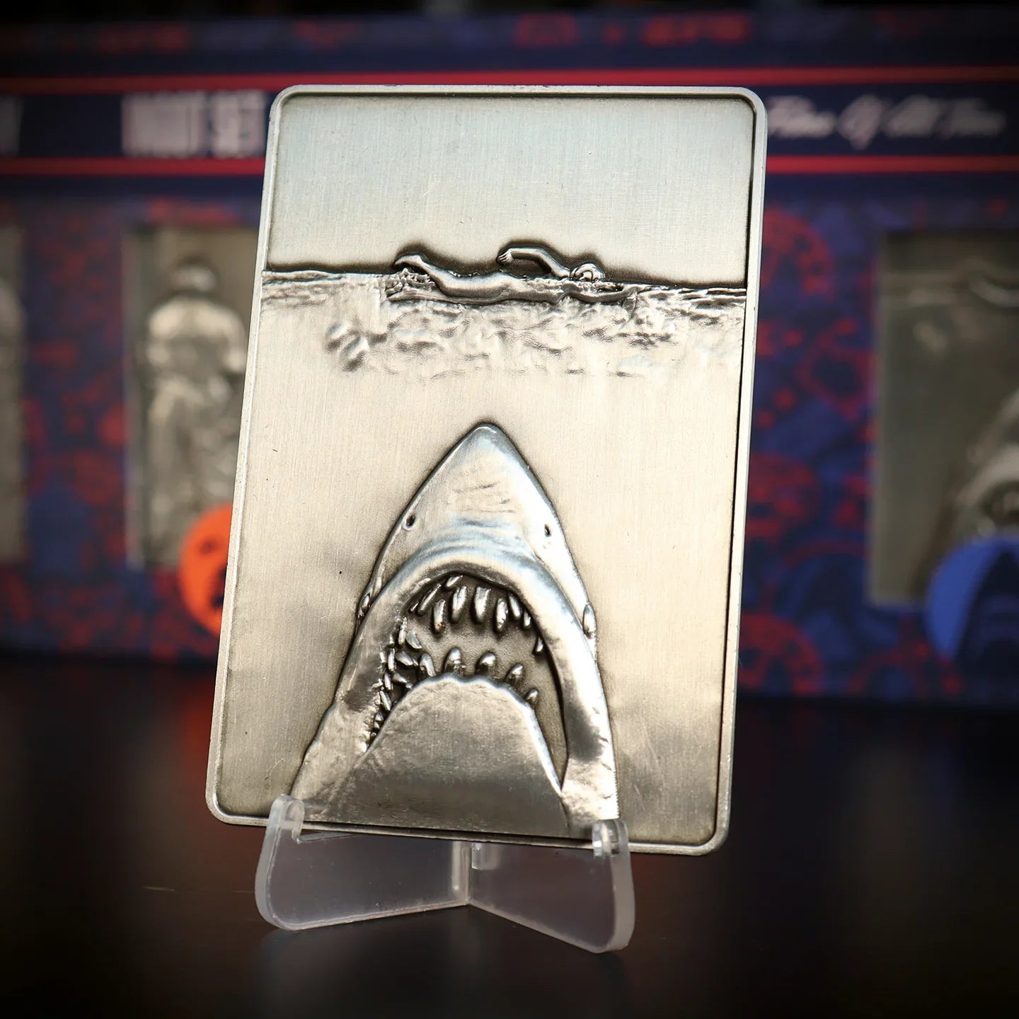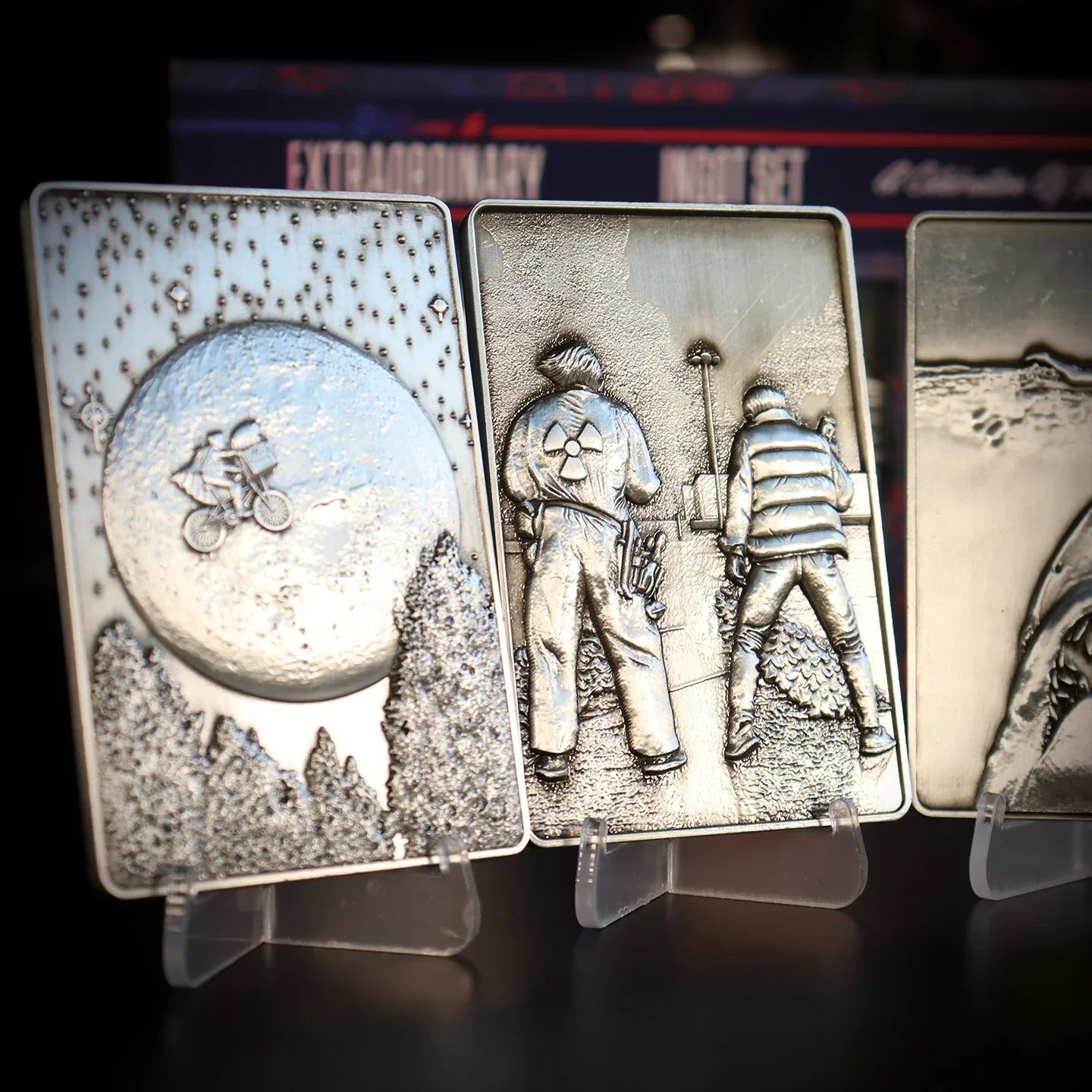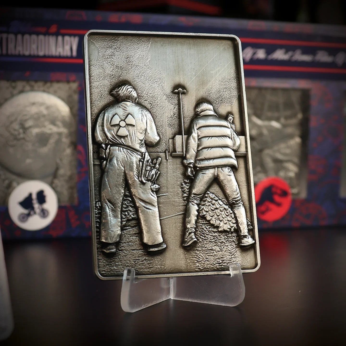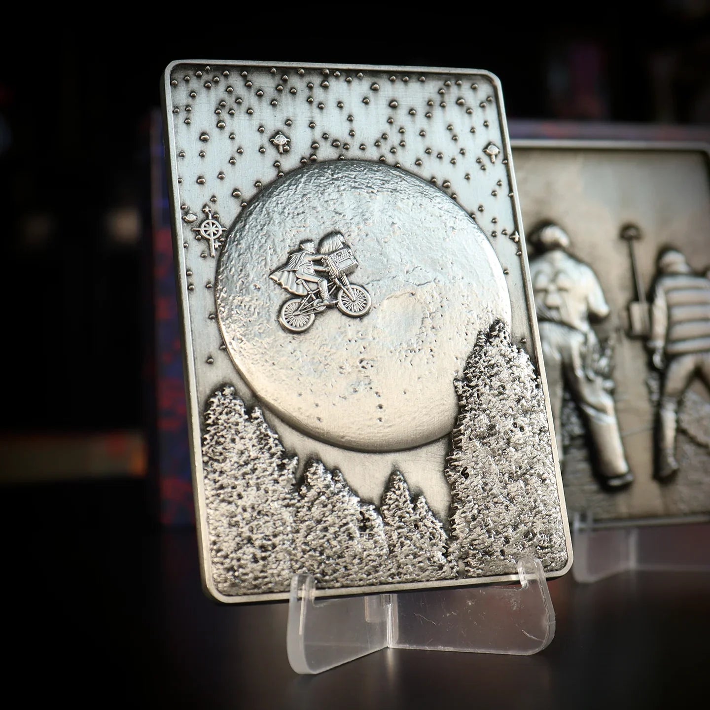 Four heavily embossed metal Ingots featuring Back to the Future, E.T. The Extra-Terrestrial, Jaws & Jurassic Park. All of the Ingots come with individual display stands and the set is individually numbered and limited to 5,000 worldwide.
