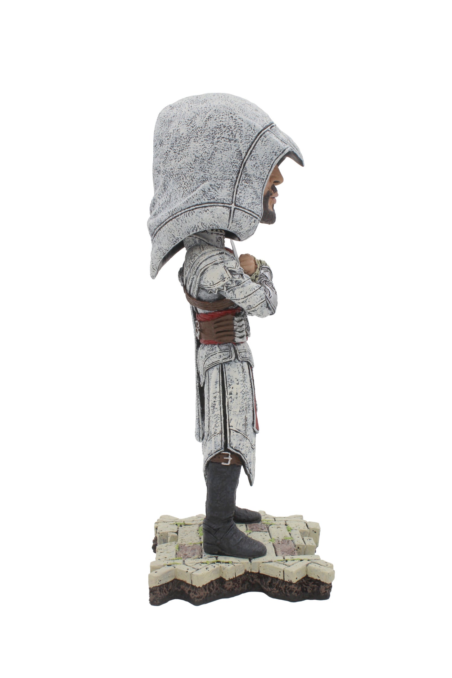 From the bestselling video game Assassin’s Creed: Brotherhood, this bobbling Head Knocker features the legendary Ezio Auditore on a detailer sculpted base and stands approximately 8 inches tall. The figure is cast in resin and then individually hand painted for extraordinary detail. Perfect for any fan! Comes in collectible matte packaging with spot gloss finish.