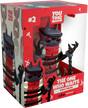 Standing at 4.4 inches tall draped in thick white robes with a large red streak cascading over his body, his spindly black hands are raised upward and shackled at the wrists with chains fixing them to the ground. With sharp pointed ears and a black band around his head, his sullen face stares downwards with a trio of glowing red eyes as a series of black chains wrap around his body to restrain him. The exterior of his packaging sees a solitary pentagram etched into the ground. While the interior is a vibrant blood splatter littered with symbols over an off-white background. The protective sleeve continues this off-white, with crosses and chains affixed to the ground and being pulled into the sky as his figure can be seen through the large clear window at the packaging’s front. This collectible ships in a matte, embossed, protective outer sleeve and a custom-sized plastic protector for maximum protection during shipping.