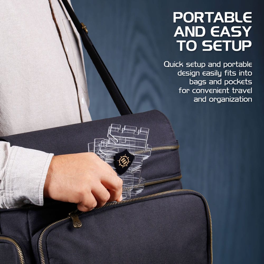 ENHANCE Dice Tower Dice Tray - Equipped with Dice Fortress Design for Organized Dice Rolling, True Random Tumble Tower, Quick and Easy Setup. The ENHANCE Dice Tower is the perfect addition to any gaming table for dice organization and adds a bit of thematic flair to your group's gaming session. Made from durable transparent acrylic, our dice tower was made for added organization and practical use at any gaming table. The see through design allows you to see your dice tumble down the inside of the tower for added suspense. The tower features 3 tumble levels to truly randomize your dice rolls so you don't ever have to worry about the legitimacy of rolls. The wide top opening and spacious rolling tray allow you to roll up to 14 dice at once, perfect for hurling those super dangerous fire balls and sleep spells.