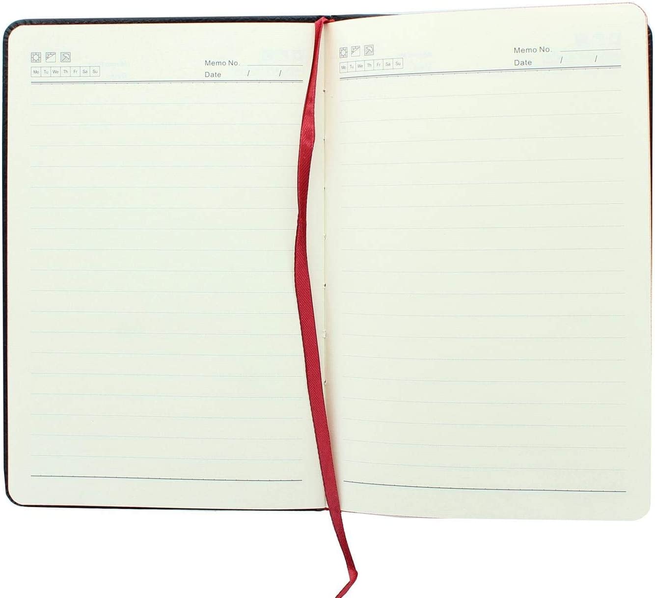 - SPECS: Faux leather bound journal has lined pages and an attached red elastic bookmark band. Measures 7.5 inches tall and 5 inches wide.