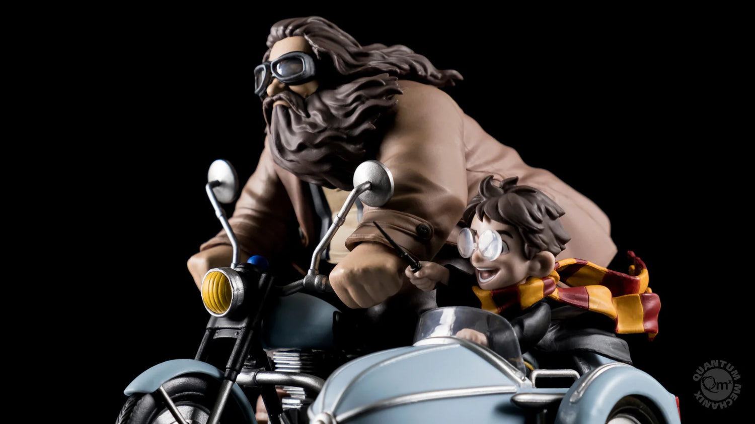 Our biggest and most complex Q-Fig Max yet, the Harry and Hagrid Q-Fig Max Diorama depicts the two friends on Hagrid's magical motorcycle as they race towards adventure. Hagrid's long hair and beard is blown back by the wind while Harry smiles and brandishes his wand, ready for action.