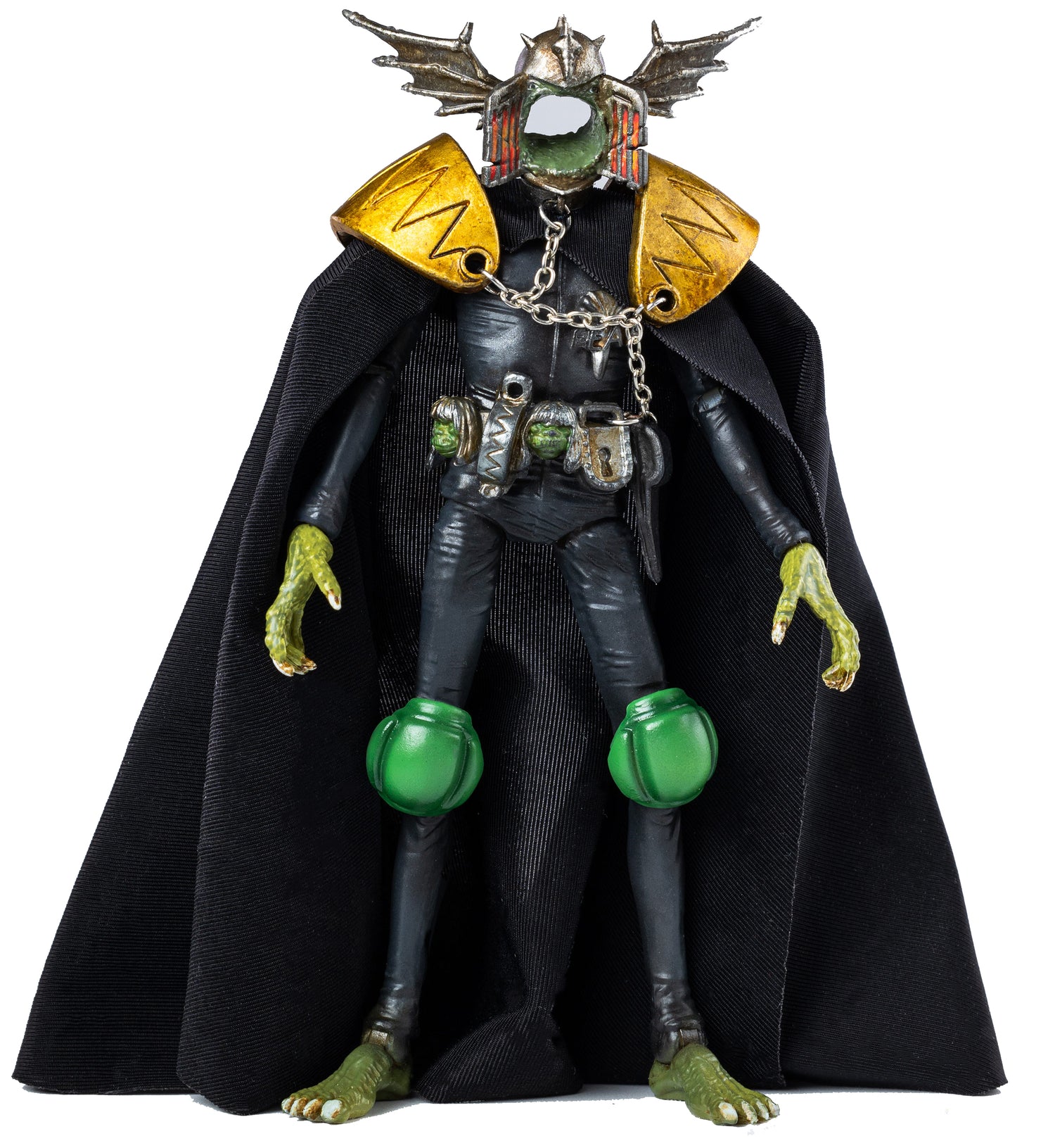 The figures boast 13 and 16 points of articulation, respectively, along with shoulder and joint pads, chains, and badges of office. Judge Fear's helmet is specially designed to recreate the classic pose, featuring a fist-sized hole for Dredd's epic punch. Packaged in an attractive protective cardboard window box, these fully poseable 1/18 scale figures are a must-have for collectors and fans alike.