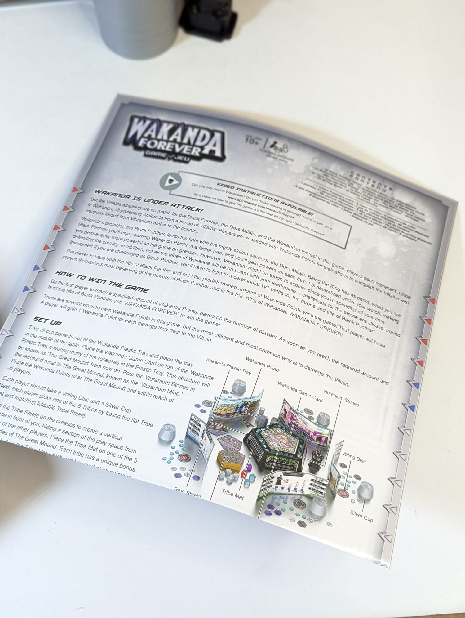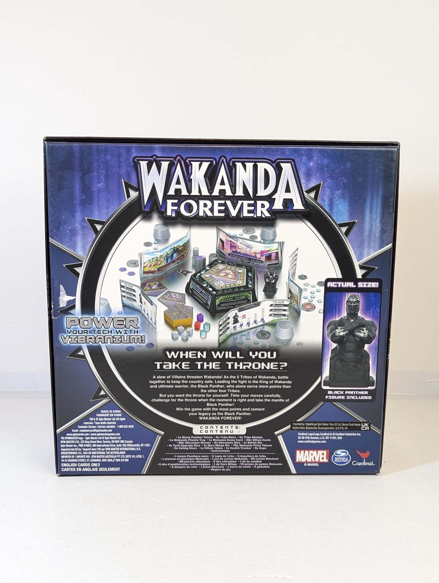 A slew of villains threaten Wakanda! As the five tribes of Wakanda, battle together to keep the country safe. Leading the fight is the King of Wakanda and ultimate warrior, the Black Panther, who alone earns more points than the other four tribes — but you want the throne for yourself, so time your moves carefully, challenge for the throne when the moment is right, and take the mantle of Black Panther! Win the game with the most points and cement your legacy as the Black Panther.