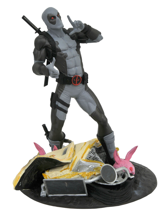 Deadpool returns to SDCC in style! Unfortunately, his ride got trashed along the way, and Deadpool is posed atop a destroyed taco truck base, sporting bunny slippers and wielding twin finger guns with the safeties off! This exclusive X-Force Edition of Deadpool stands approximately 10 inches tall and is made of high-quality PVC with collectible-quality paint applications. Packaged in a full-color window box. Designed by Caesar, sculpted by Cortes Studios! Limited to 3,000 pieces. A Diamond Select Toys release!