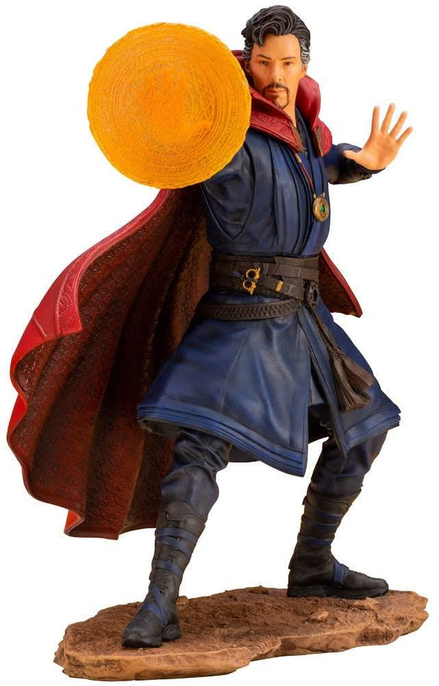 From Kotobukiya. The latest character to join Kotobukiya's ARTFX+ lineup from the record breaking and history making Marvel Studios film Avengers: Infinity War is the Sorcerer Supreme, Doctor Strange! The statue comes with multiple interchangeable hand parts, allowing you to display Doctor Strange with or without a mandala in front of his right hand, and his left hand can be displayed in a spell casting pose. Like the other statues in the Infinity War ARTFX+ Series, Doctor Strange comes with a dynamic base that allows you to display him alongside Thanos to recreate their final showdown on Titan.