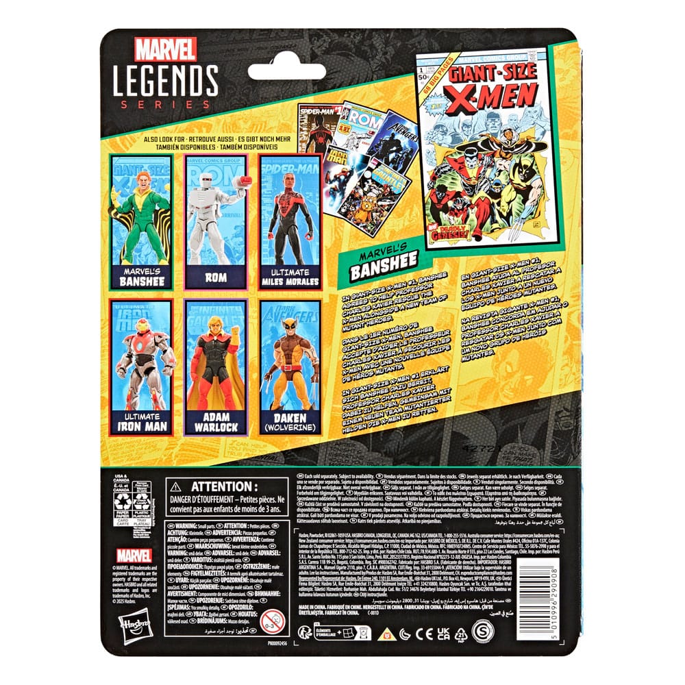 Bring the excitement and wonder of the Marvel Universe to your collection with Hasbro Marvel Legends Marvel's Banshee figure! Detailed to look like the character’s appearance in Marvel's Giant-Size X-Men #1 (1975), this collectible 6-inch scale Marvel figure is fully articulated with premium design and poseable head, arms, and legs. This Marvel action figure set comes with 5 accessories, including 3 alternate hands, alternate head portraying the character’s iconic sonic scream face, as well as a 6-inch scale plastic comic book accessory featuring the cover of Giant-Size X-Men #1 (1975). Hasbro Marvel action figures' 6 inch scale make them great for posing and displaying in fans' collections. Reimagine comics-inspired scenes on your shelf with Marvel Legends action figures and Marvel collectibles.