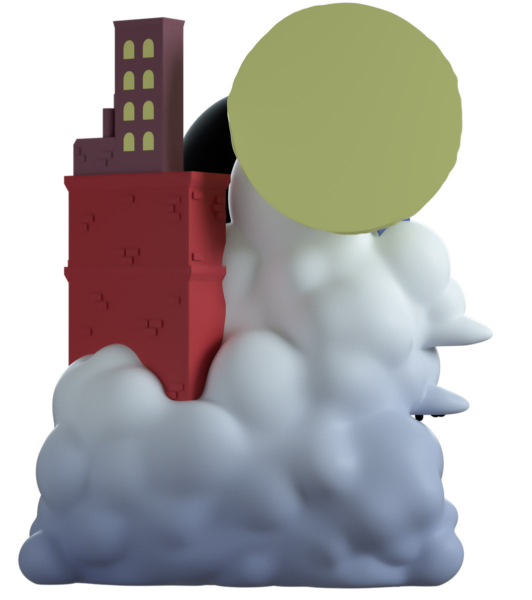 Perched on a red brick ledge at 4.8 inches tall with each outstretched hand hovering over a curling gargoyle, a large smoke cloud billows out from behind him to weave up around the tall buildings and shining full moon. Posed with one leg bent and at the ready to spring into action, a bright white spider stretches across his dark chest as pointed eyes stare forward at you. The exterior of the packaging shows a struggling Symbiote as a large clock bells clang loudly around them, while the interior is covered in light grey panels of Marvel comics. The protective sleeve is enveloped in a thick white smoke which rolls across its New York backdrop as his figure can be seen through the large clear window at its front. This collectible ships in a matte, embossed, protective outer sleeve and a custom-sized plastic protector for maximum protection during shipping.