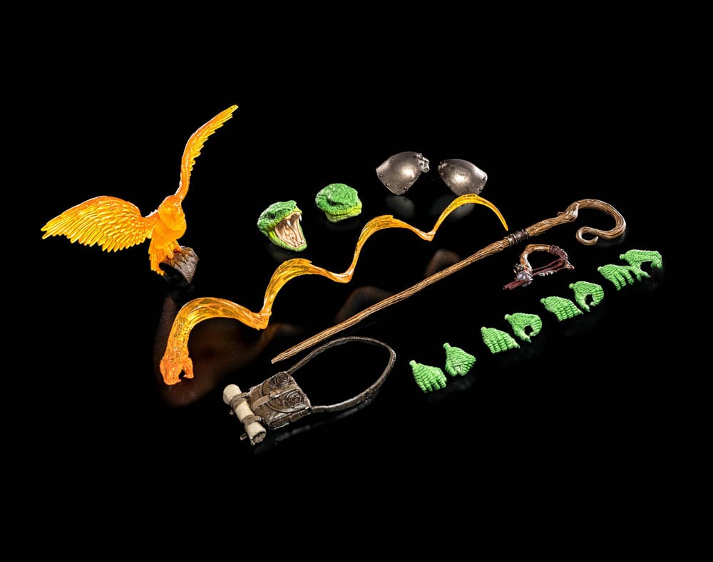 The Coatl race of "snake men" made a huge debut with our Ninian Infantry figure! That figure sold out at LegionsCon and online very fast, so this new Coatl Druid was created to meet the fan demand for more snake characters! This figure comes with 2 total heads and it also includes extra hands, 2 "magically conjured" animal companions, magic staff with 2 toppers, hip bag and belts, shoulder armor, and premium wired soft goods cloak and skirt.