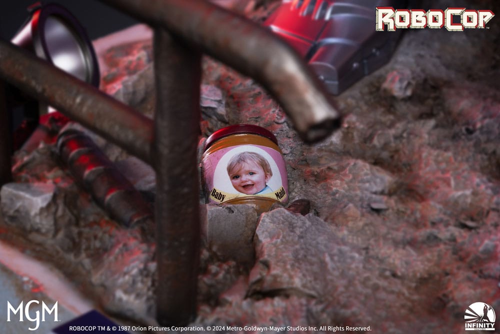 The iconic sci-fi action film Robocop (1987) left a deep impression on fans worldwide. The movie follows the story of Murphy, a Detroit police officer tragically killed in the line of duty. Scientists in Detroit save him by merging his brain with a mechanical body, creating Robocop, a hybrid of human intelligence and mechanical strength dedicated to preserving peace and fighting crime. Infinity Studio brings this legendary character to life with the Robocop 1/2 Silicone Statue, allowing fans to relive the movie's most memorable moments and honor this timeless classic. "Dead or alive, you're coming with me."