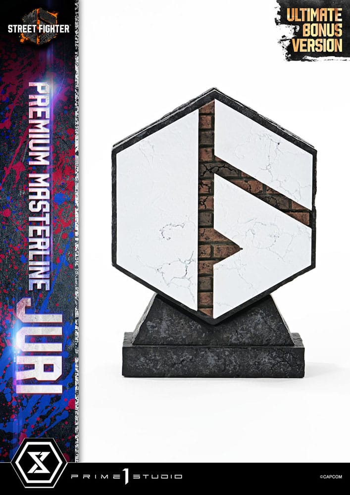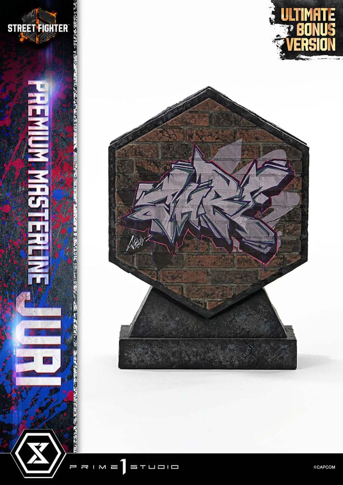 Elusive Kicks, Unleashed Chaos. The Sadistic Thrill-Seeker, Powerfully Realized Evolving game balance and a steady stream of new characters- "Street Fighter 6" has taken the world by storm. Now, Juri joins the Premium Masterline lineup! A thrill-seeking sadist who revels in conflict and suffering, Juri's fighting style and ruthless nature are meticulously brought to life in this 1/4 scale statue. Her strong yet agile one-legged stance highlights the balance between her powerful upper body and toned quadriceps. Every detail, from her slanted bangs and unique twin-tails to her sharp facial contours and provocative smirk, has been meticulously sculpted. Her spider-like costume design and signature pink and blue accents perfectly capture the spirit of the game. The specially designed base features a vibrant neon sign and her iconic helmet, evoking the bustling streets of Metro City's downtown. Graffiti on the shutter, reminiscent of the character select screen, and the pink glow from the LED illumination further immerse you in the world of Street Fighter 6. This Ultimate Bonus Version comes with a variety of additional parts. Raise her left leg high to provoke her opponent or unleash her Feng Shui Engine at full power to execute the iconic Kaisen Dankai Raku. Combine the effect wall and head stands to recreate dynamic battle scenes filled with energy and motion. As an exclusive bonus, this version also includes a character graffiti stand, bringing the game's vibrant hip-hop aesthetic to your display. At last, the sadistic thrill-seeker makes her Prime 1 Studio debut. Experience her devastating charm through the unmatched combination of exquisite sculpting and vivid painting, a truly unstoppable attack you won't want to miss! Specifications/Additional Items: - Street Fighter 6 Themed Base?(with LED Illumination) - 3 x Swappable Heads (Taunting, Mocking, Feng Shui Engine) - 4 x Right Arms (Beckoning, Resting on Waist, Holding a Smartphone) - 2 x Left Leg Parts (Bent Knee, Raised Vertically) - 2 x Head Stands - 1 x Effect Wall - 1 x Juri Graffiti Logo Stand [BONUS PART] - LED Power Supply Method: TBA * Please prepare batteries, USB cables, or other necessary items depending on the final power supply method. Please note: Due to the size of this item, additional shipping costs may apply. Apart from your location, the actual package size and weight is needed to determine those costs. Both are unknown at this point and may not be available until the product arrives in our warehouse.