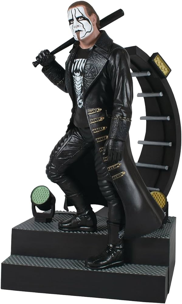 A Diamond Select Toys release! It's Stiiiiiing! The Icon has cast a long shadow ever since he came to All Elite Wrestling, and now he's casting a shadow on your toy shelf! This 10-inch Gallery Diorama of the legendary wrestler depicts him with his trusty baseball bat, wearing his leather duster on the entrance steps, a moment taken straight from his debut at Winter is Coming! Made of high-quality PVC, this sculpture comes packaged in a full-color window box. Designed by Gabriel Cassata, sculpted by Patrick Pigott!