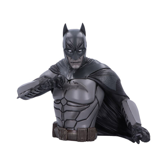 Show your support of the caped crusader with Nemesis Now's Officially Licensed Batman Bust. Seen wearing his iconic black and grey batsuit, which conceals his identity. The Caped Crusader stands posed, gripping his cape tightly with one hand, ready to take on his enemies. Cast in high-quality resin before being carefully hand-painted, this piece is a must-have addition to any Batman fanatic's collection.