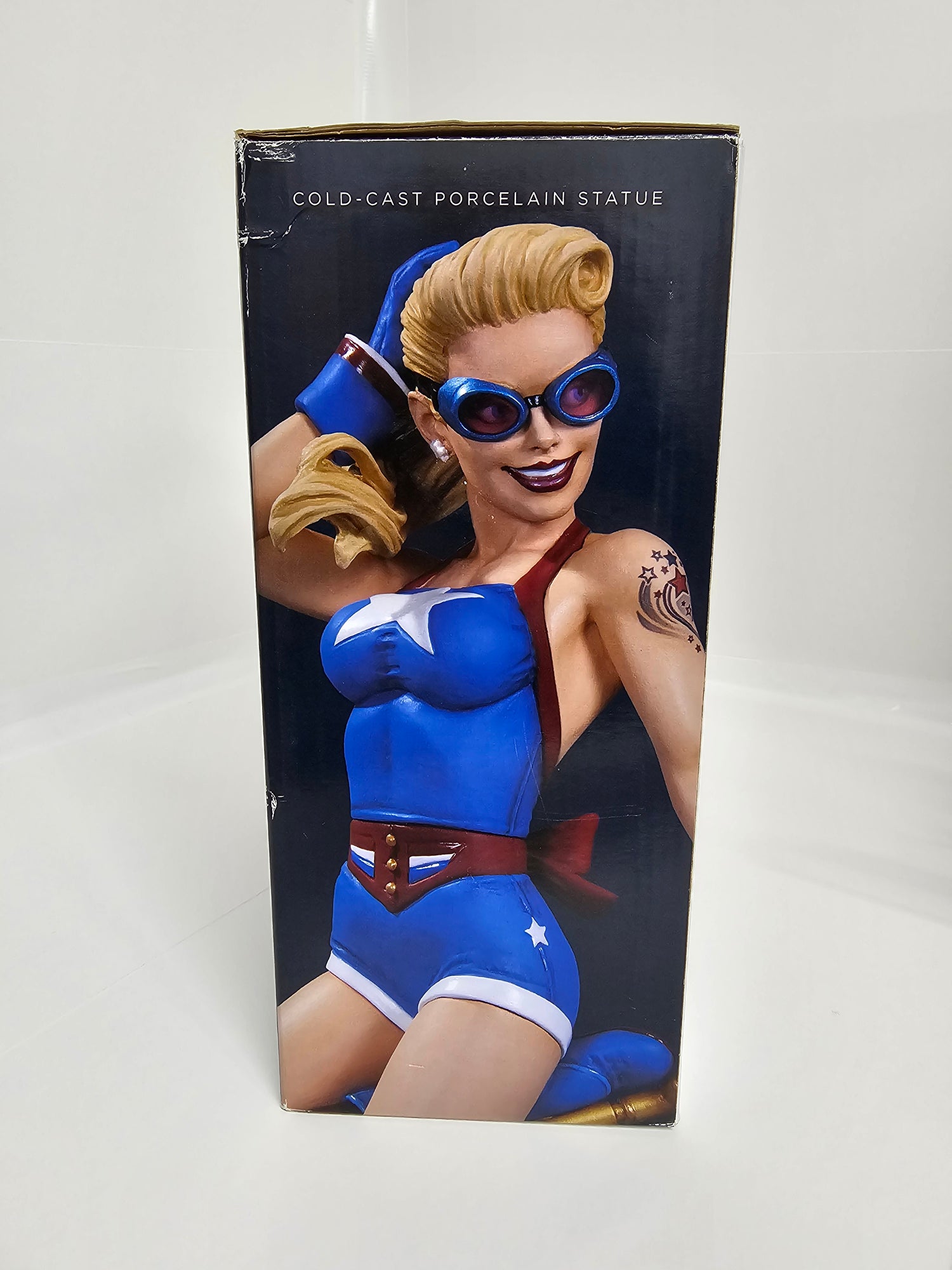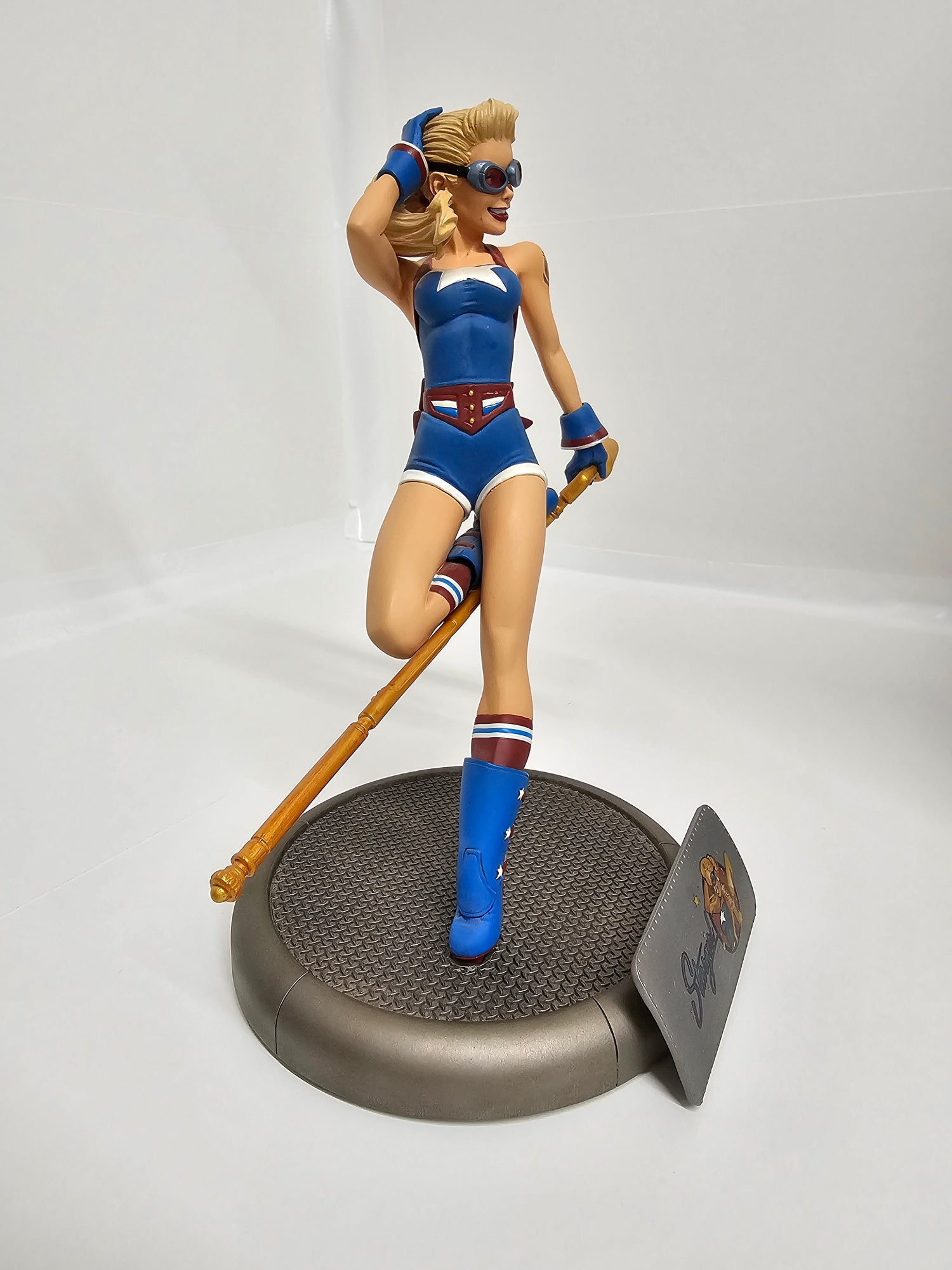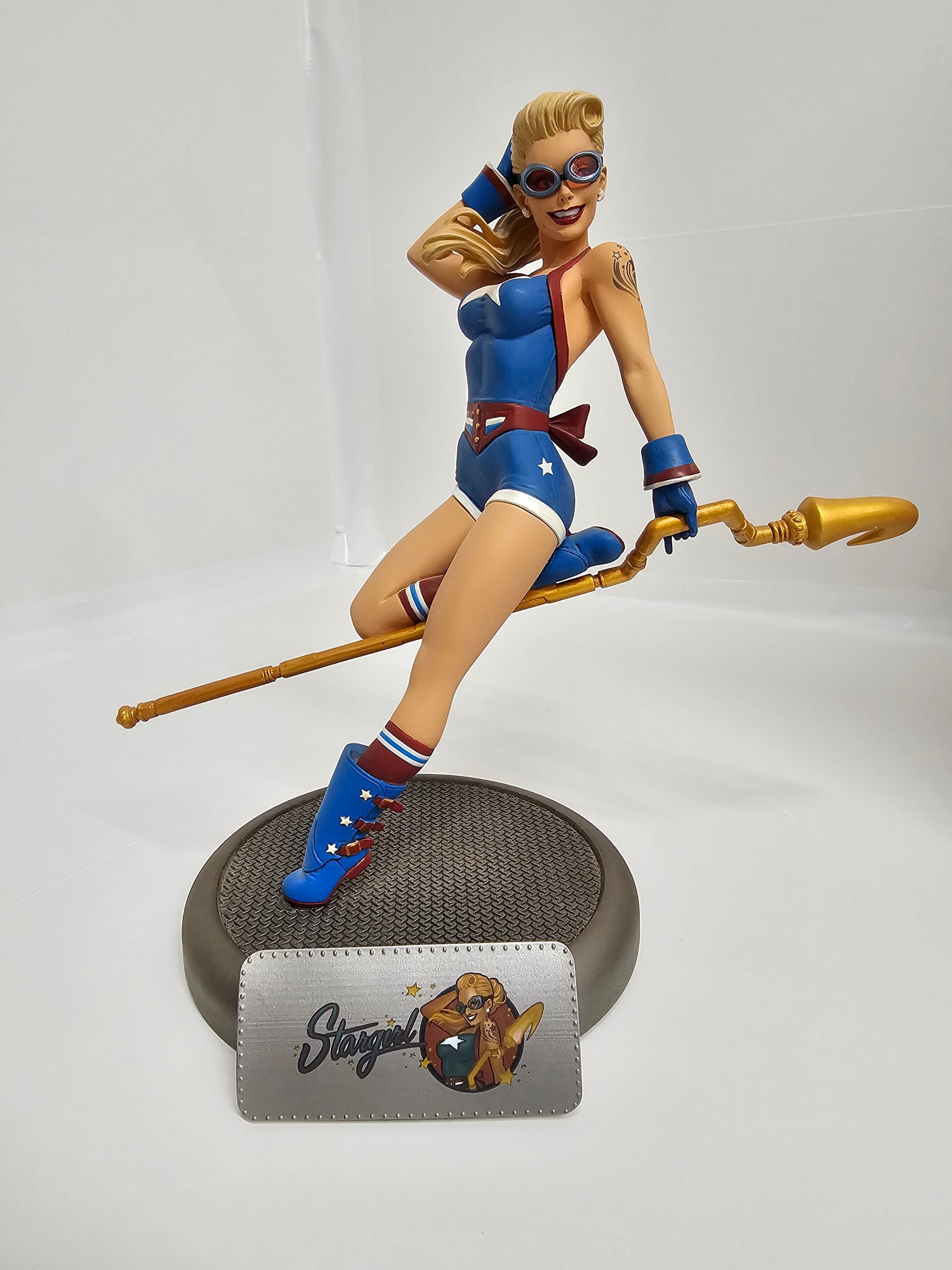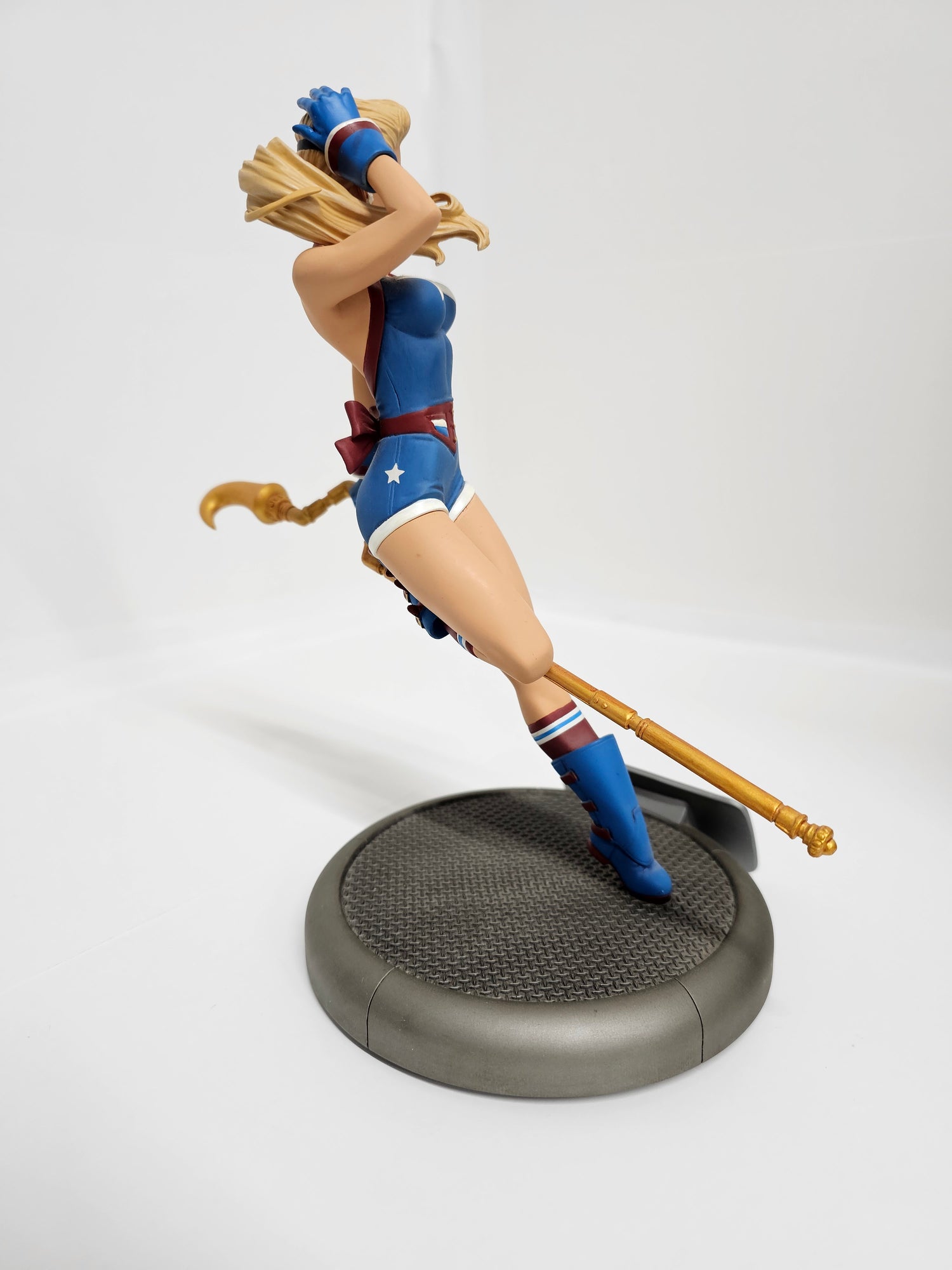 Designed by Ant Lucia. Sculpted by Tim Miller. The line of striking stylized statues of the most popular female heroes and villains of the DC Universe modeled after the pin-ups of the 1940's continues with teenage super heroine Stargirl! Limited Edition of 5,200. Measures approximately 9.7" tall.