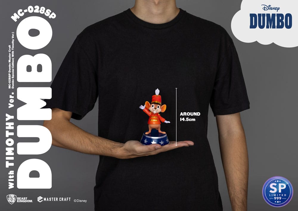 Beast Kingdom's "Master Craft" collection of highly detailed statues introduces a special edition series for 'Dumbo'. This time, sporting a pearlescent effect, the intricate design features a soft color palette as his large, signature ears reveal his shy and adorable look. Dumbo is seen here holding a feather given by the crow, now in a blue color, symbolizing the joy of Dumbo as he has his friend by his side. Most importantly, we can't miss Dumbo's supportive best friend in his new color scheme! "Timothy" joins the ranks of the Master Craft line-up as he takes the stage with his best friend, adding a little extra touch of warmth with this special edition. Don't miss out on this exquisitely beautiful Dumbo collectible, which is limited to 999 pieces worldwide. Hurry up and grab him tightly, only from an official Beast Kingdom outlet!