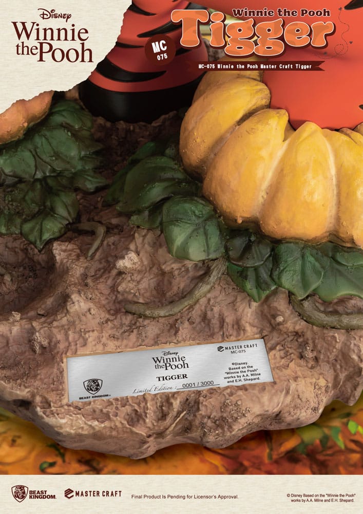 The cheerful and energetic "Tigger" is bouncing his way to a desk near you! Get ready to collect a figure from the highly coveted Master Craft range by Beast Kingdom, featuring the MC-075 Tigger. Arguably the most lively character from Disney, the Winnie the Pooh Master Craft is a meticulously designed, handcrafted statue, complete with intricate coloring techniques. This statue captures Tigger's high-octane energy and his distinct orange and black colors as he bounces on his tail, stepping into a pumpkin patch. Bring a little joy and excitement home and marvel at the high-quality, limited release of only 3000 pieces worldwide. Available exclusively from an official Beast Kingdom outlet.