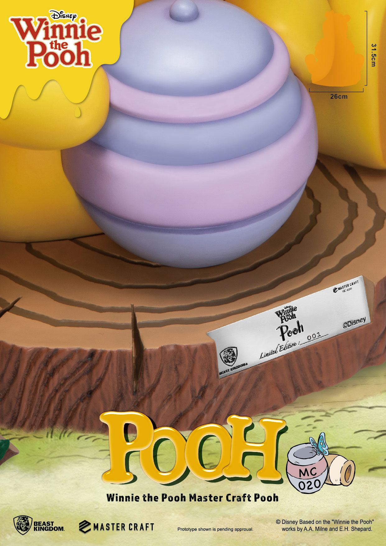 Experienced entertainment brand Beast Kingdom would like to introduce the Master Craft Winnie the Pooh figure. Seated on a model tree stump platform, there is a sturdy figure of the wholesome and lovable Winnie the Pooh. Pooh, a boy's teddy bear that transforms into a mischievous bear in the forest, has a love for honey that invites the ire of bees. What trouble will he find in his next adventure?