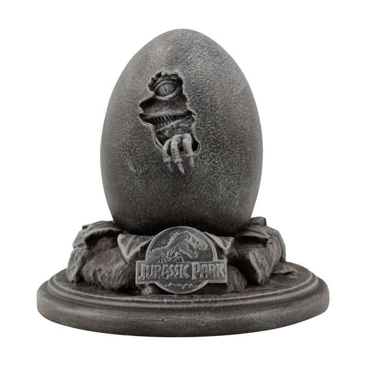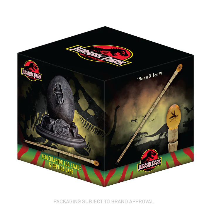 "Welcome to Jurassic Park!" Share John Hammond's love for the park with this 30th anniversary, limited edition replica egg and cane set. Measuring 12cm high, this Replica Egg has a stone effect finish and features the iconic Jurassic Park logo. Paired with the egg, is a miniature replica of John Hammond's famous cane measuring 18.9cm tall! Used to genetically replicate the dinosaurs, this cane is finished with the mosquito in amber and includes a display stand within its presentation box. In celebration of the films release, this Replica Set is limited to 1993 worldwide with each box being individually numbered.