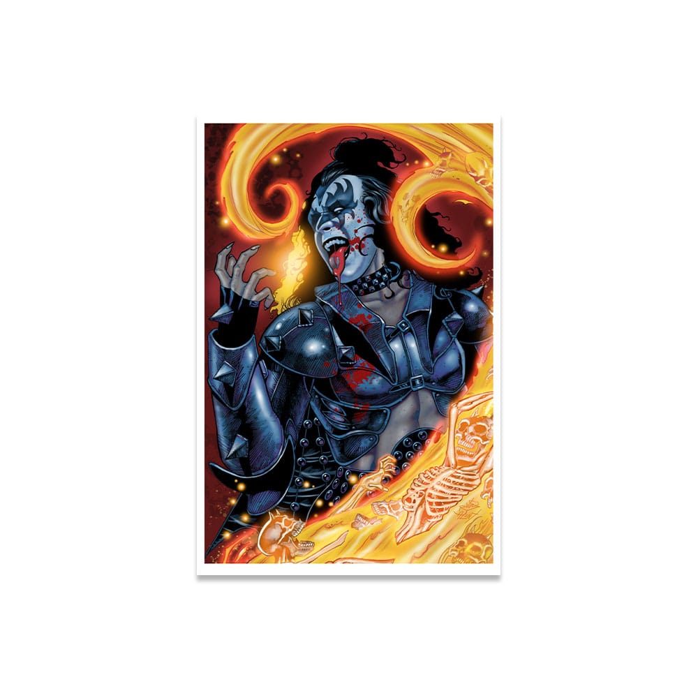 Commemorating this momentous clash of creative titans, each purchase of The Demon statue comes with an exclusive A3 Art Print by none other than the illustrious Jim Balent - a maestro of comic book artistry. Immerse yourself in the visual explosion of Balent's vibrant strokes as he immortalizes the timeless allure of KISS and the unparalleled magnetism of The Demon himself.