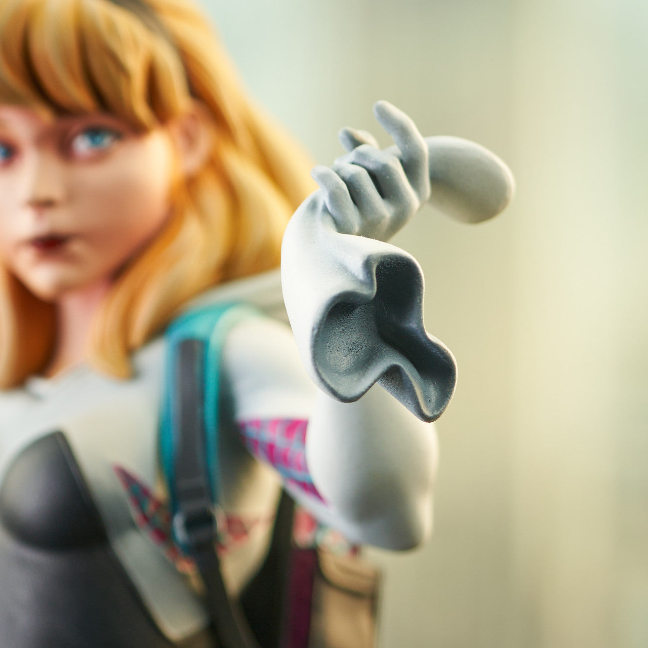 A Diamond Select Release! You may know her as Spider-Gwen, but to the world she's Ghost Spider! This 1/7 scale, approximately 6" resin mini-bust depicts the super-heroine unmasked, with mask in hand, backpack on her back and web lines flying! Limited to only 3,000 pieces, this beautiful portrait comes packaged in a full-color box with a numbered certificate of authenticity. Designed by Nelson Asencio, sculpted by Juan Pitluk!