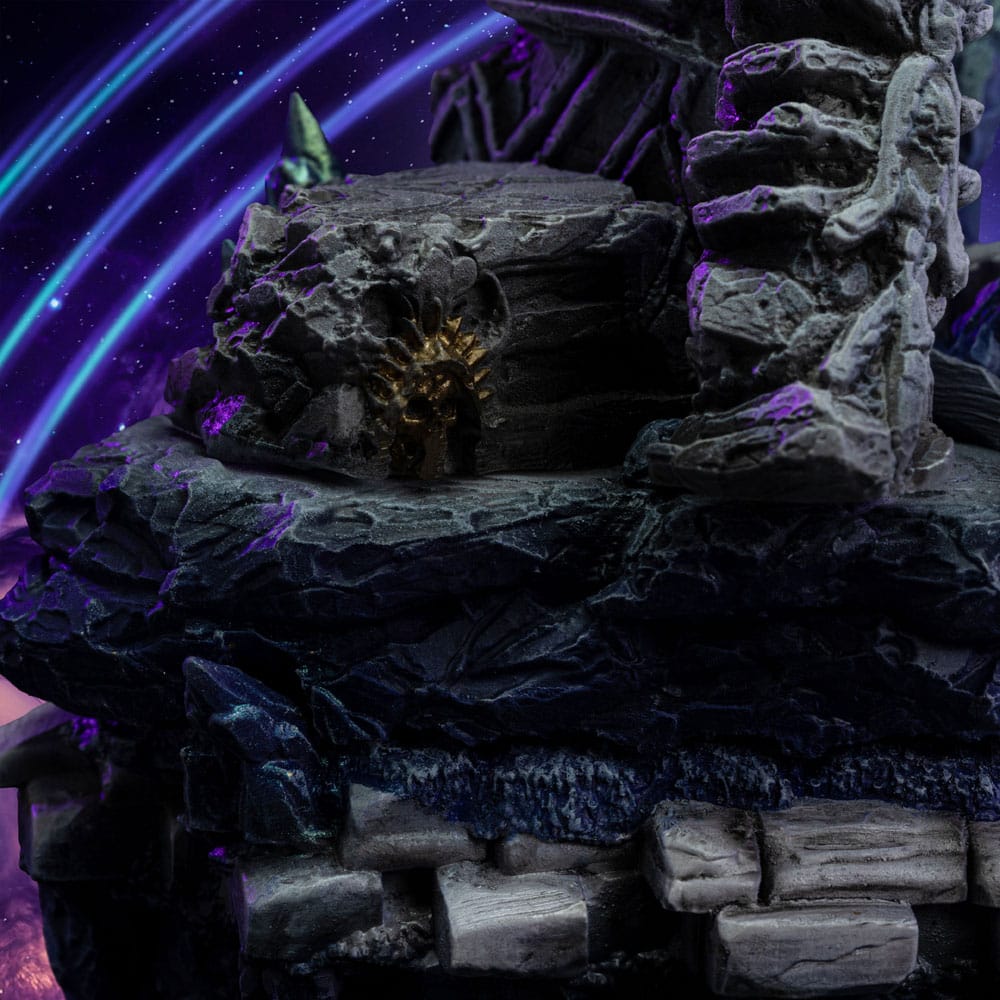 In an emblematic battlefield beyond time and space, amidst the ruins of a temple built to honor Lady Death, the space hero known as the Human Rocket hovers above a rubble of rocks with jagged stones and sculpted skulls. Wearing his altered and enhanced dark, blue, and gold Centurion Prime uniform, with clenched fists energized by the strength of a unique sentient mind artificially created from a living supercomputer, he joins a pantheon of great heroes to confront the titan Thanos and his Infinity Gauntlet. Iron Studios presents the "Nova - Infinity Gauntlet Diorama - Deluxe Art Scale 1/10" statue, featuring the champion of Xandar and Earth, produced for the first time by Iron Studios, presenting the superhero member of the New Warriors, the Defenders, the Champions of Xandar, the Secret Avengers, the Nova Corps, the Guardians of the Galaxy...The Man called Nova!
