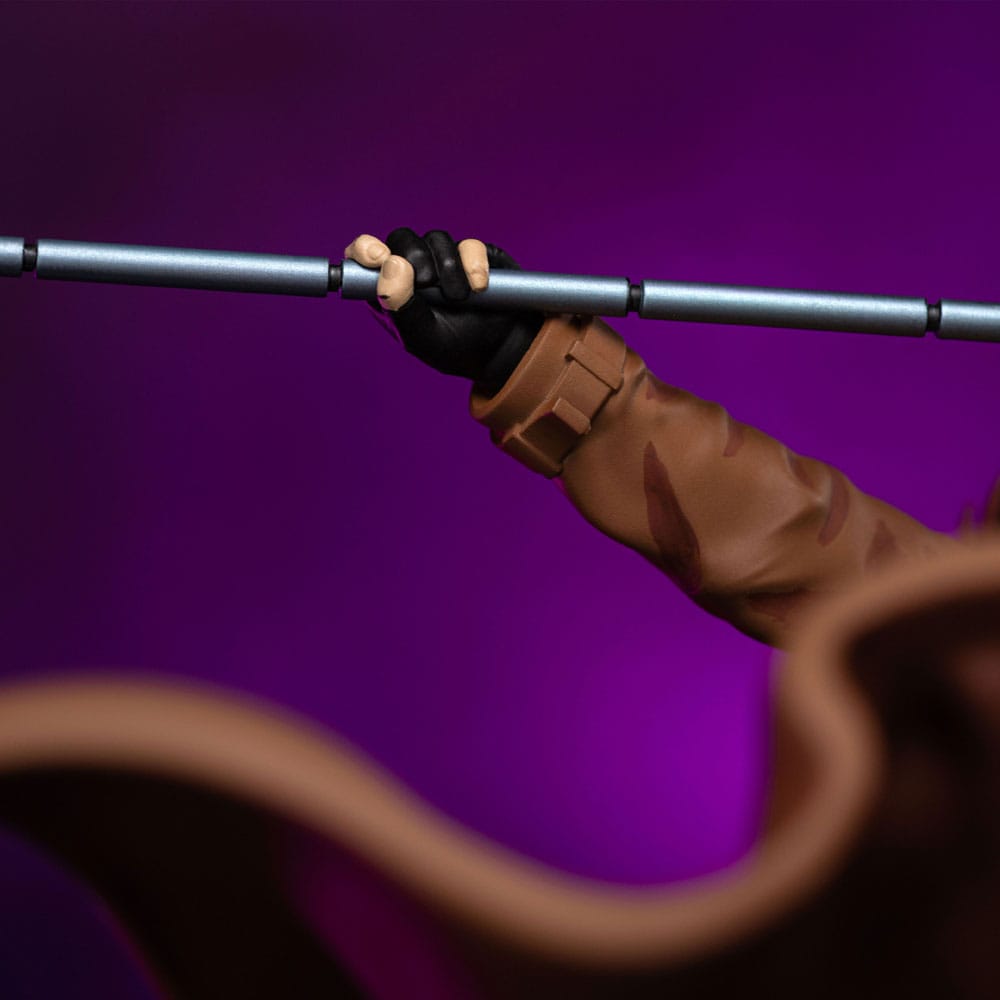 Running across an arid terrain made of rocks, gravel, and pebbles, the relentless Canadian mutant hero with indestructible metal bones advances with outstretched arms and unsheathed claws against a threat, slicing the air with kinetic energy from his sharp blades. Leaning on his back, the famous explosive card player, holding his retractable Bojutsu combat staff in his left hand, positions his body forward, ready to leap into combat. Allies in the mutant hero group, and partners on the battlefield in maneuvers trained in the legendary Danger Room of their headquarters at Xavier's Mansion, Iron Studios proudly presents the "Gambit & Wolverine - X-Men '97 - Deluxe Art Scale 1/10" statue, capturing the duo in a moment of action with innovative painting techniques and specific cel shading that makes these figures in the new collection appear as if they are stepping out of the TV screen, inspired by the highly successful animated series available on Disney+ streaming service.