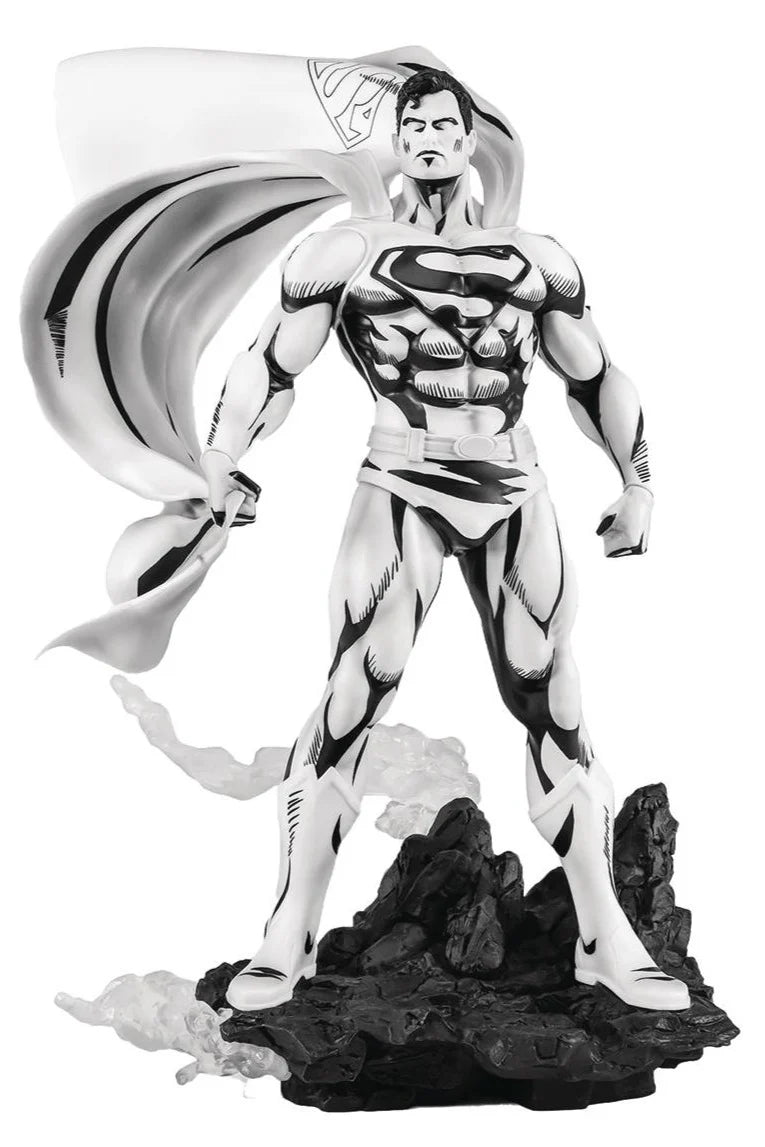 Capture the quintessential work of one of the most influential Superman creators of all time with this striking statue of the Man of Steel from PureArts! Standing at an impressive 12" tall in 1/8 scale, this Black and White rendition of Superman recreates his pose in an iconic panel from John Byrne's revolutionary 1986 mini-series Man of Steel with a classic comic ink style. Meticulously crafted from PVC and ABS materials, this PREVIEWS Exclusive collectible is presented in a collector friendly, full color illustrated window box. An homage to the enduring legacy of John Byrne, this dynamic portrayal of Superman is sure to be a treasured addition to any DC collection. Limited to 1,000 Pieces!