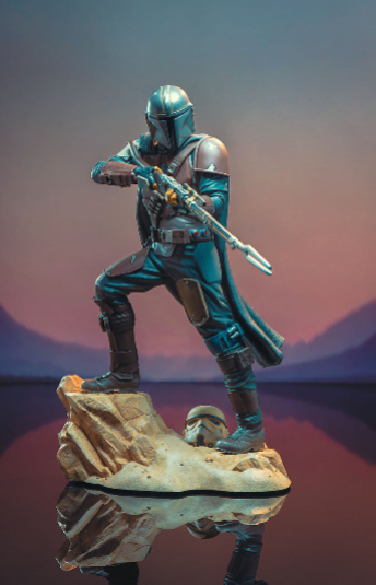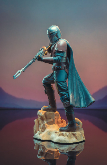 A Gentle Giant Ltd. release! The hit TV series goes 3D with this Premier Collection statue of The Mandalorian! Measuring approximately 11.5 inches tall, this resin sculpture shows the Mandalorian raising his long-barreled weapon. Digitally sculpted and hand-painted in incredible detail, it is limited to only 3,000 pieces and comes packaged with a certificate of authenticity in a full-color box.