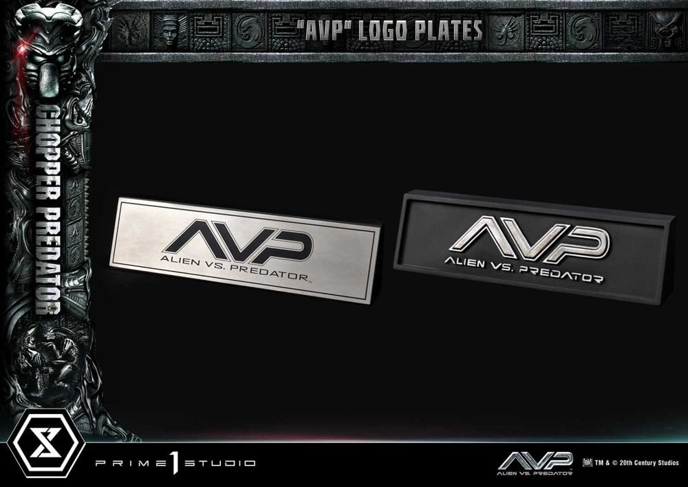 As you have seen from the previous announcement of the other two brothers of the trio, Scar and Celtic, Prime 1 Studio takes immense pride in delivering nothing less than excellence. Our artisans continue their momentum for this Predator lineup and bring the final Yautja of the movie to life. At over 40 inches tall, Chopper, also sometimes called the Gill predator due to the distinctive gills on his Bio-Mask, stands tall and fearsome. He takes the name from his arm-mounted scimitars, which are longer than the usual Wristblades of his brothers. Like the rest of the hunting party, he is also fully geared from head to toe, equipped with an arsenal of advanced technology and weaponry. Massively muscular, the predator has both arms ready to slice at enemies foolish enough to come within reach. In addition to the necklace of smaller skulls, two human skulls are mounted on pikes on his back, adding to his overall imposing height. The base features ancient Yautja-constructed ruins as well as a broken spearhead; it is accompanied by two silver and black "AVP" logo plates to display.